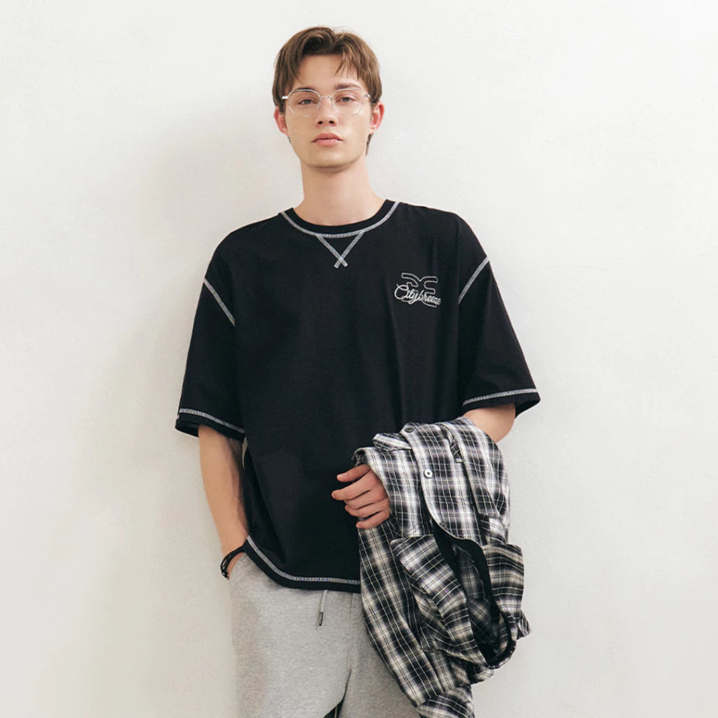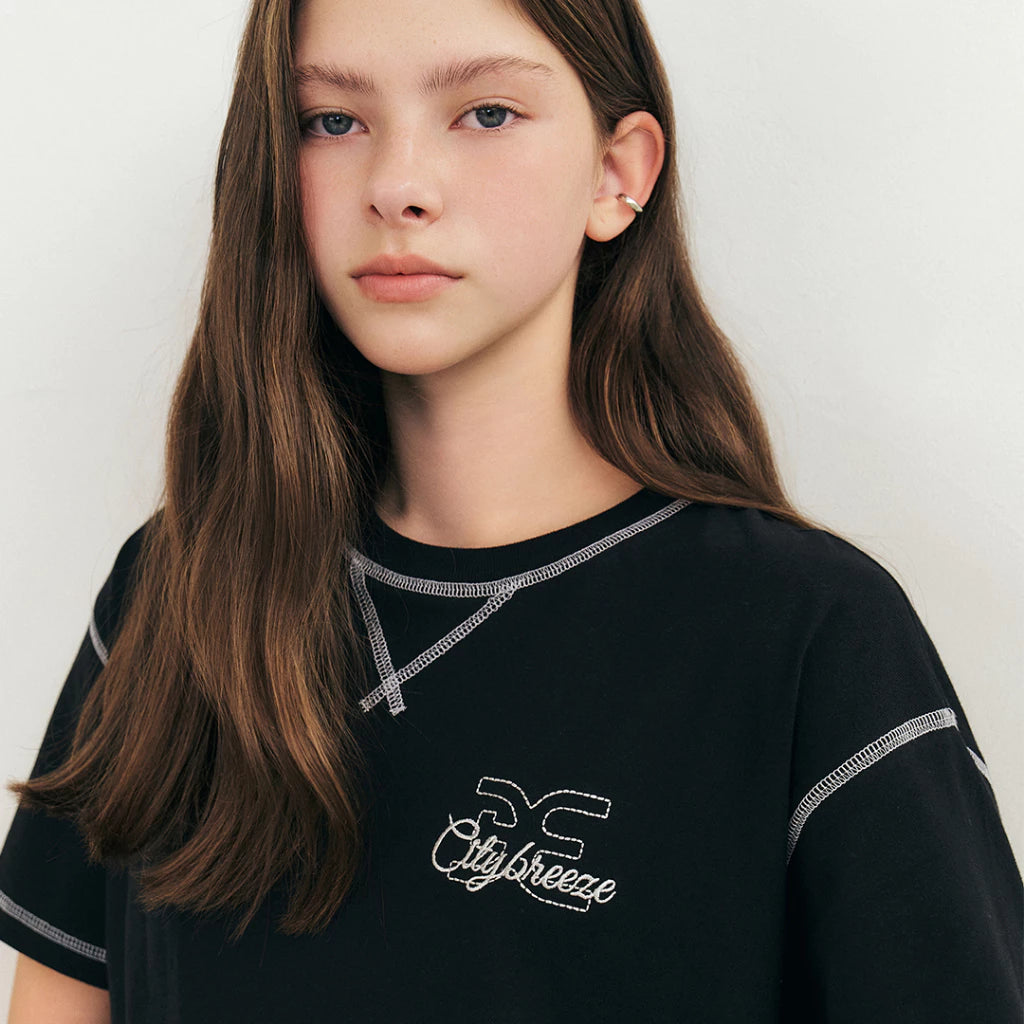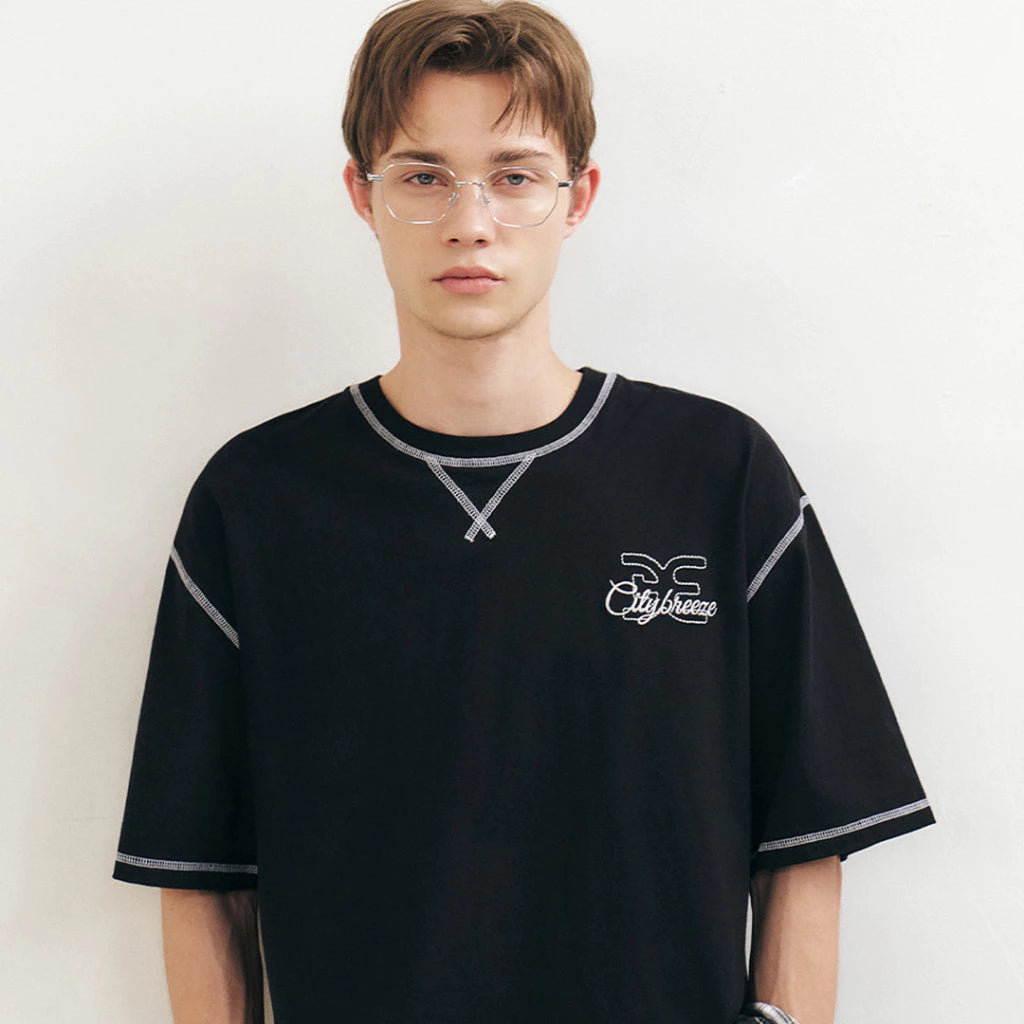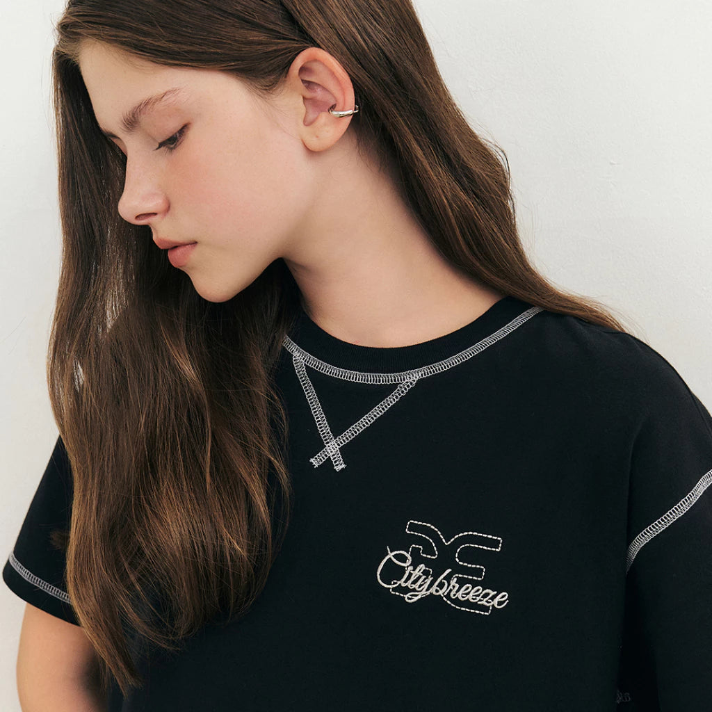CITYBREEZE 反車線造型LOGO短袖上衣(男女同款) 黑色
