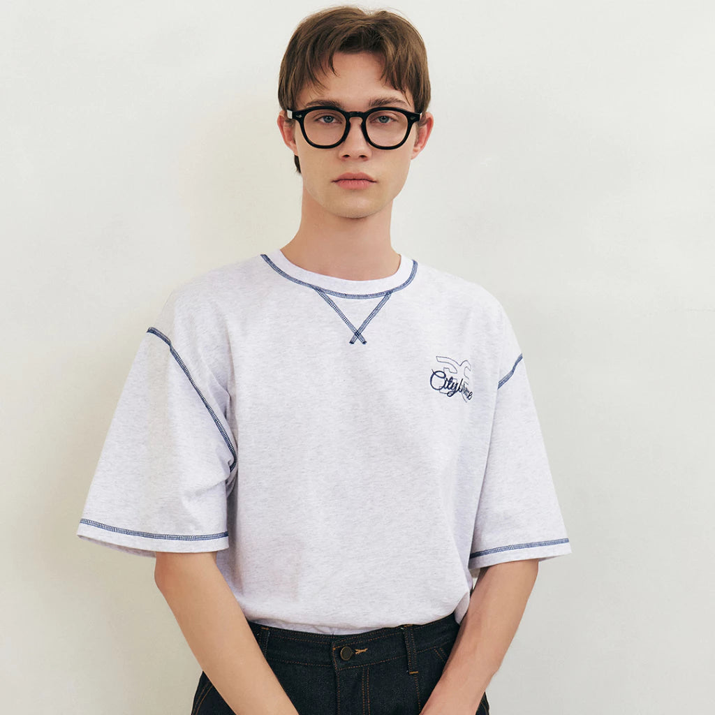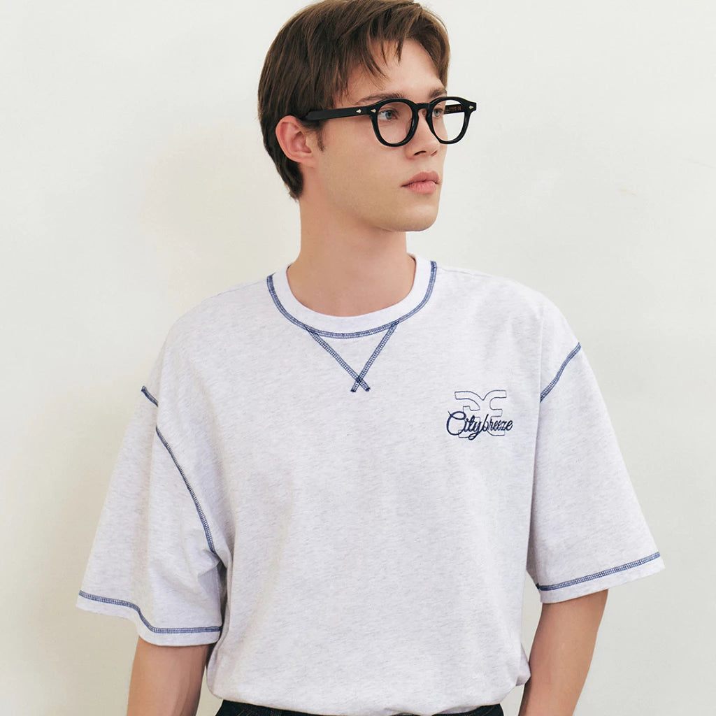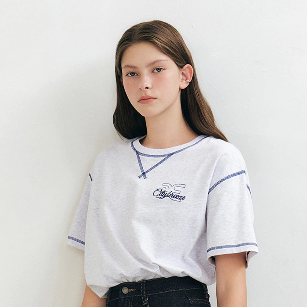 CITYBREEZE 反車線造型LOGO短袖上衣(男女同款) 花灰色