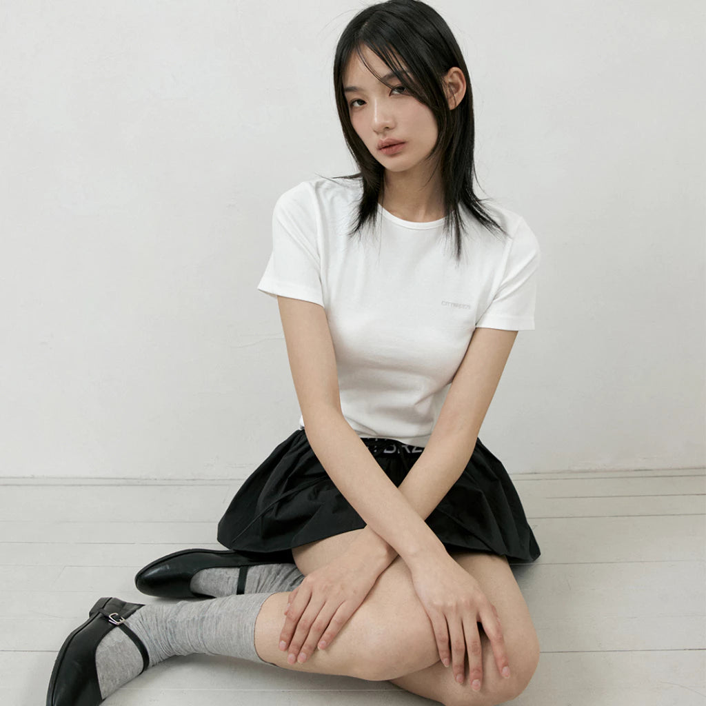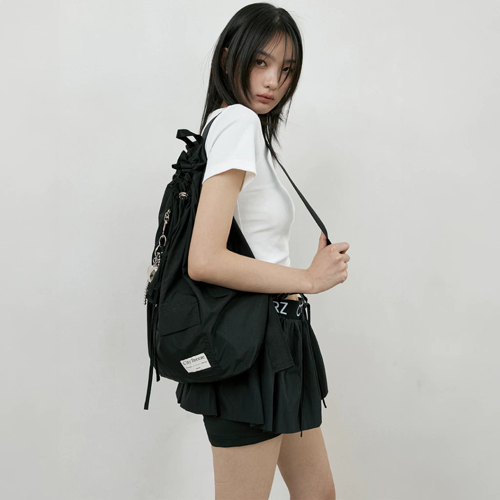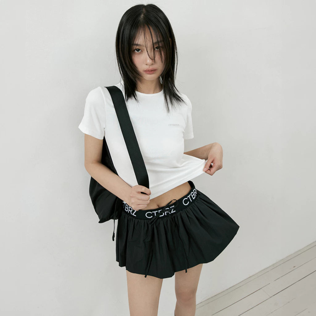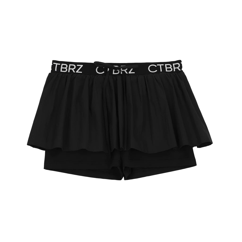 CITYBREEZE 百搭基本款皺褶尼龍褲裙 黑色