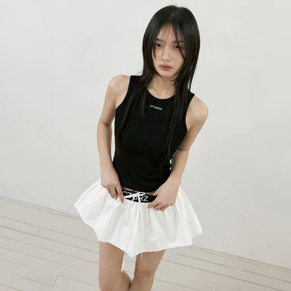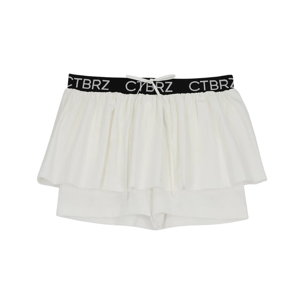 CITYBREEZE 百搭基本款皺褶尼龍褲裙 白色