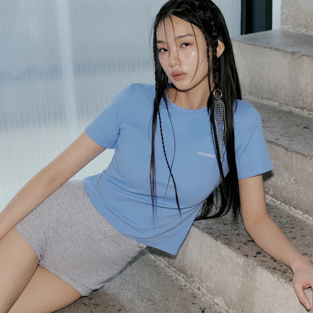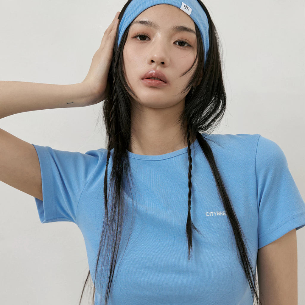 CITYBREEZE 百搭基本款修身短袖上衣 天空藍