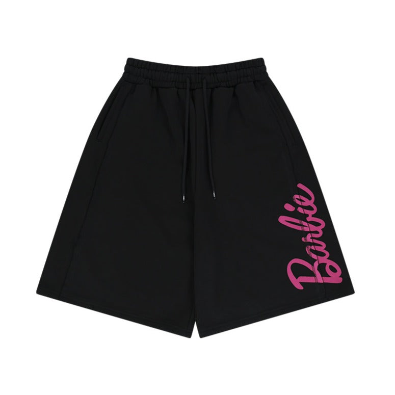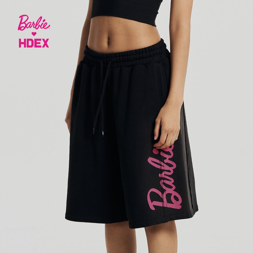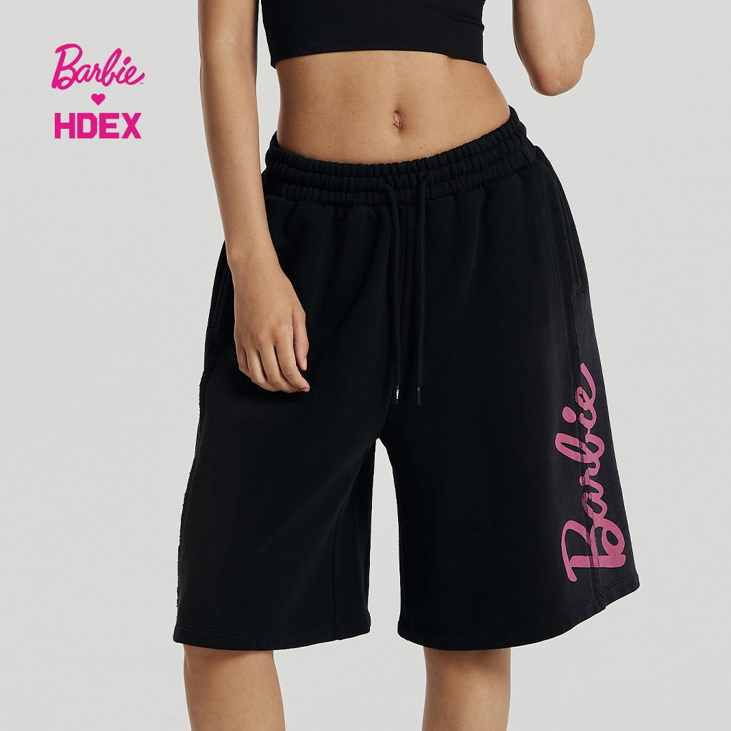 HDEX x Barbie 聯名系列Logo印花百慕達運動短褲 黑色