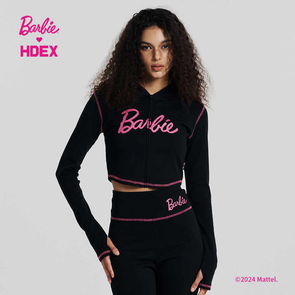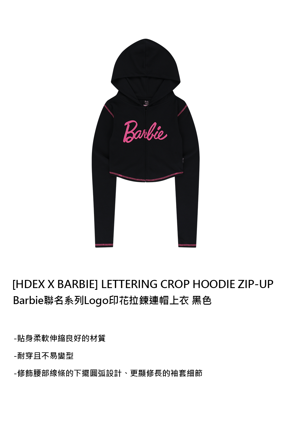 HDEX x Barbie 聯名系列Logo印花拉鍊連帽上衣 黑色