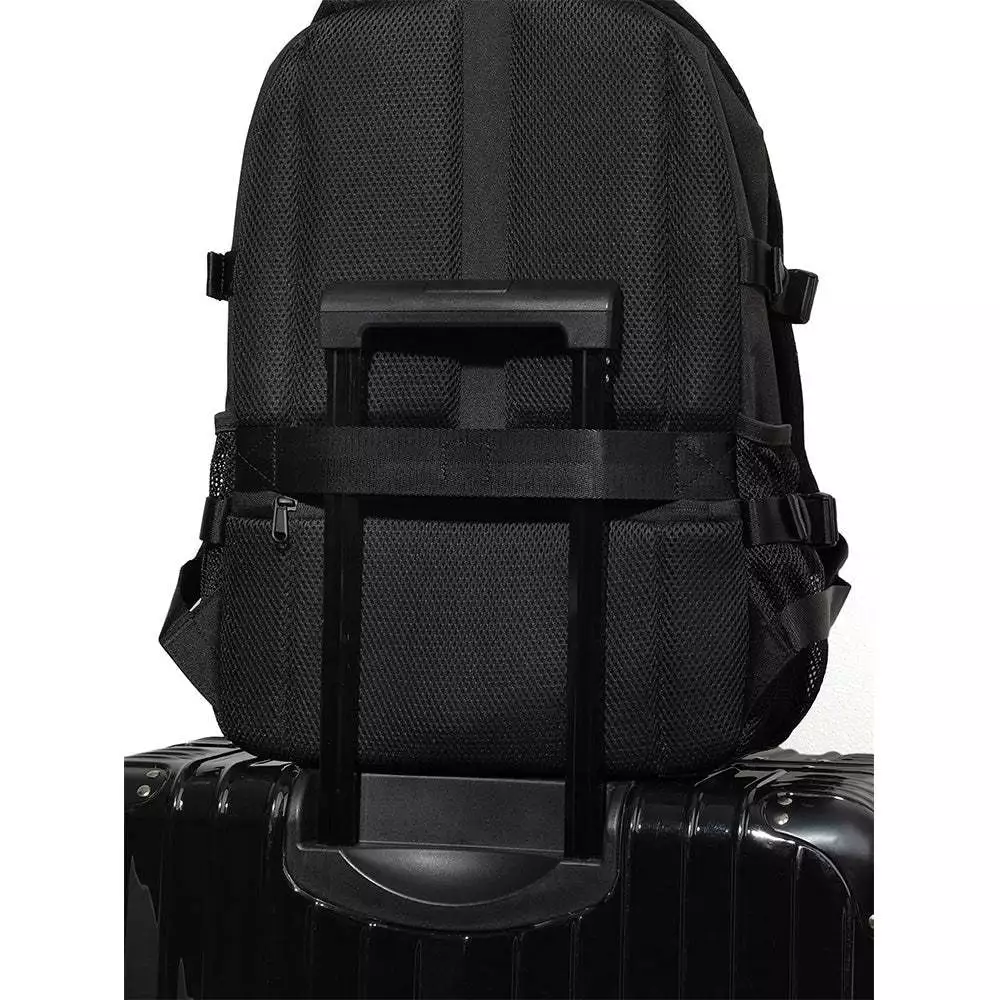 - 背包後方特殊設計,可將其套在行李箱拉桿上。
