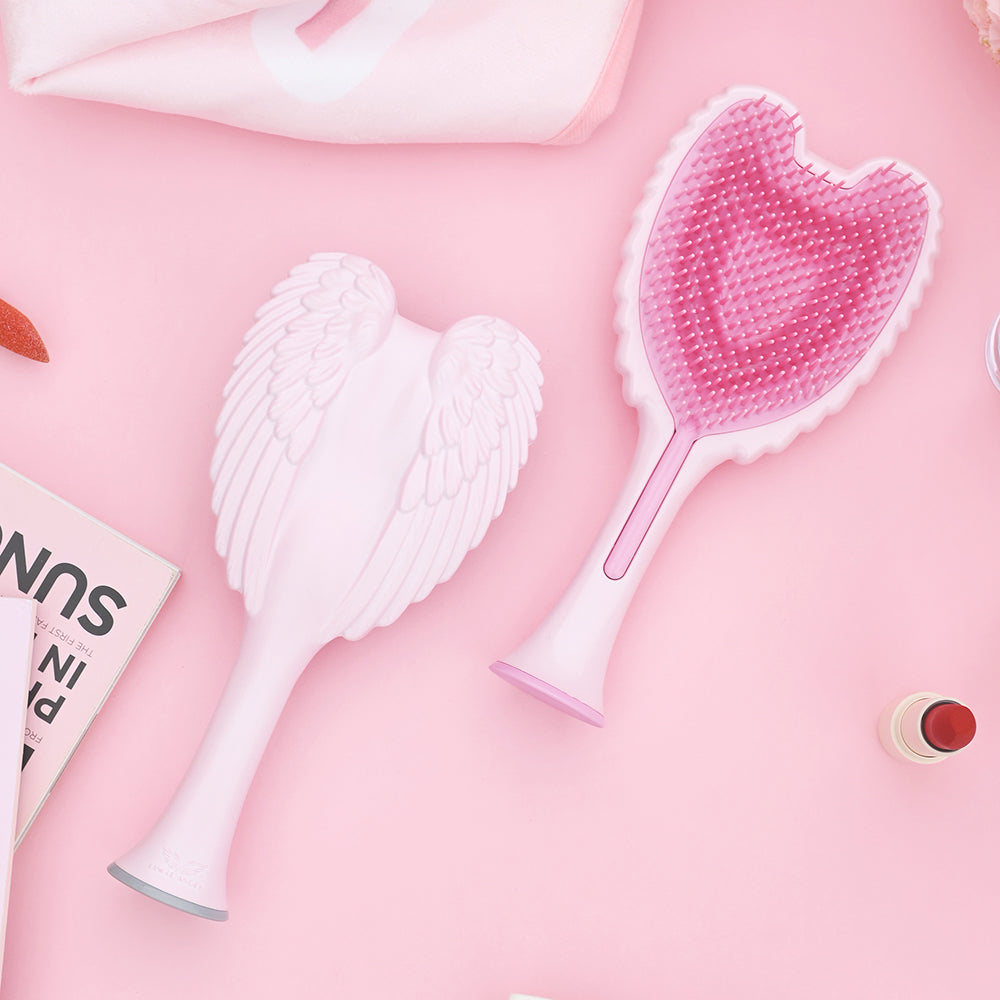 TANGLE ANGEL 2.0 天使按摩髮梳,英國凱特王妃愛用款,由英國皇室御用造型師Richard Ward監製,擁有時尚的天使翅膀外觀及唯美的浪漫色系,同時具有呵護秀髮的強大功能。使用通過ISO22196國際認證的Biomaster獨家抗菌技術、EX-STATICD抗毛躁齒梳及超彈力記憶齒梳,可避免齒梳劣化或變質產生異味,減少毛躁靜電與頭髮斷裂的問題,進一步維持秀髮與頭皮的健康。防水耐高溫的ABS材質,可耐約120度左右的高溫,沐浴時或吹頭髮時使用都沒問題,使用後亦可直接以清水沖洗,方便又衛生。特別推薦髮量較少、髮質較脆弱、細軟髮或頭髮容易打結毛躁的人使用。