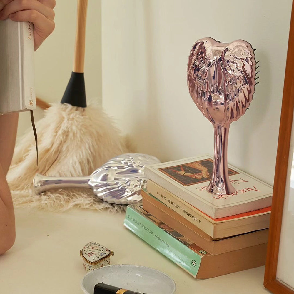 TANGLE ANGEL Pro 沙龍級天使按摩髮梳,經典款2.0髮梳的專業加強版,深受美髮設計師及造型師喜愛,由英國皇室御用造型師Richard Ward監製,擁有時尚的鏡面外觀設計,同時具有能呵護秀髮的強大功能。使用通過ISO22196國際認證的Biomaster獨家抗菌技術、EX-STATIC抗毛躁齒梳及超彈力記憶齒梳,可避免齒梳劣化或變質產生異味,減少毛躁靜電與頭髮斷裂的問題,進一步維持秀髮與頭皮的健康。防水耐高溫的ABS材質,可耐約120度左右的高溫,沐浴時或吹頭髮時使用都沒問題,使用後亦可直接以清水沖洗,方便又衛生。特別推薦給經漂染燙後毛髮嚴重受損或長髮與髮量較多的人使用。